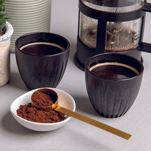 Die hübschen Becher im Bild sind im übrigens - wie auch Kugelschreiber und andere Artikel - aus altem Kaffesatz gefertigt. Ebenso gibt es Becher aus recyceltem Plastik, original Bambusstumpf, Reishülsenfasern, Mais und Kork und Trinkflaschen aus Zuckerrohr. Zu jedem Artikel gibt es eine spezielle Geschichte. So schmilzt der Zucker weder in Ihrem Körper noch in der Spülmaschine, die Flaschen sind also leicht zu reinigen und werden aus Resten der Zuckerindustrie, anstelle von Erdöl, gefertigt.